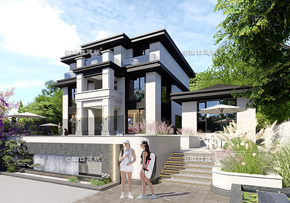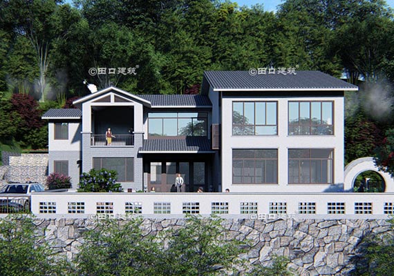 占地面積 120.0㎡ 土建造價 40.0萬 山腳下三層新中式小院