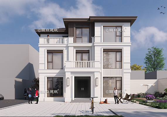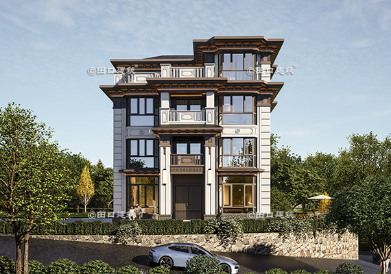 占地面積 142.4㎡ 土建造價 60.0萬 帶底商三層美式別墅